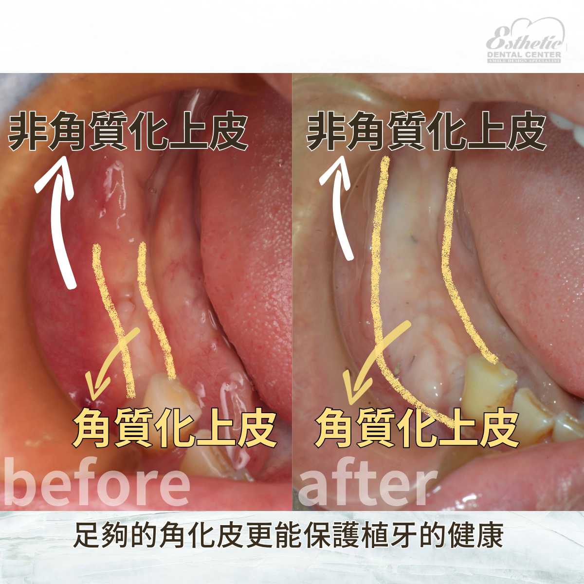 補皮前後對比-角質化牙齦能讓植牙更穩更久