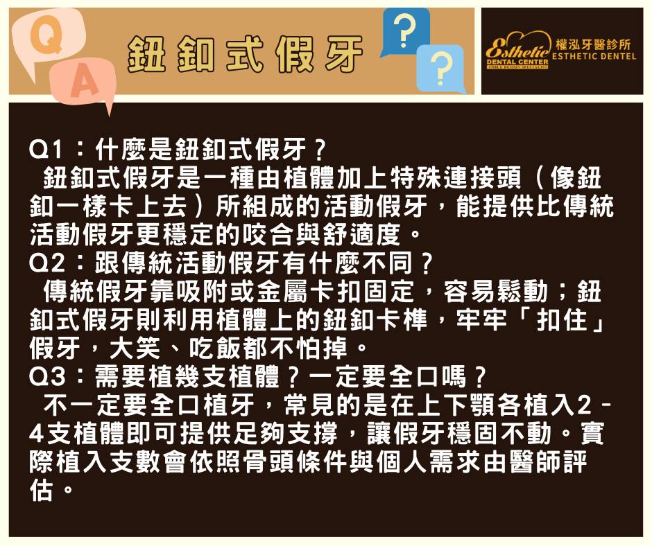 它利用植體上的「鈕釦卡榫」設計,讓假牙能「卡緊」固定: