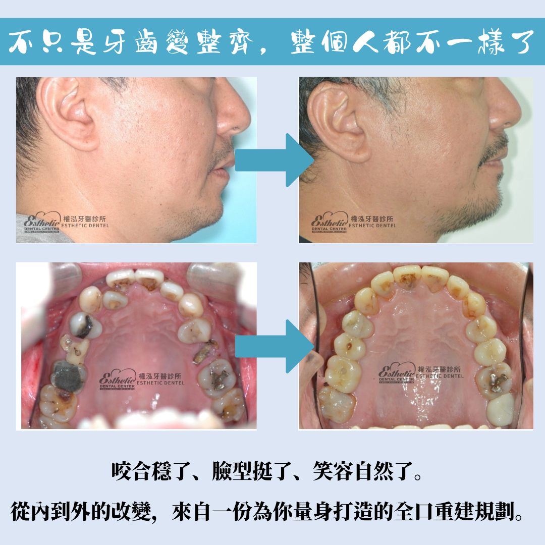 這位患者起初總是閉口不語,笑容也帶著遮掩。但在完整治療規劃下,透過 齒顎矯正、植牙與全口重建,一步一步改善咬合與齒列: ✨ 咬合穩定,能自在享受食物 ✨ 齒列整齊,笑容自然展現 ✨ 臉型改善,整體氣質煥然一新