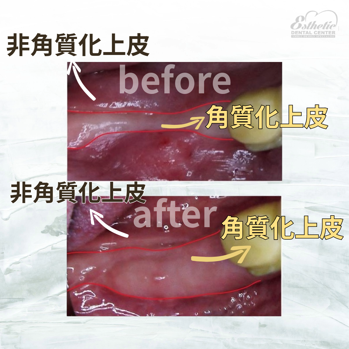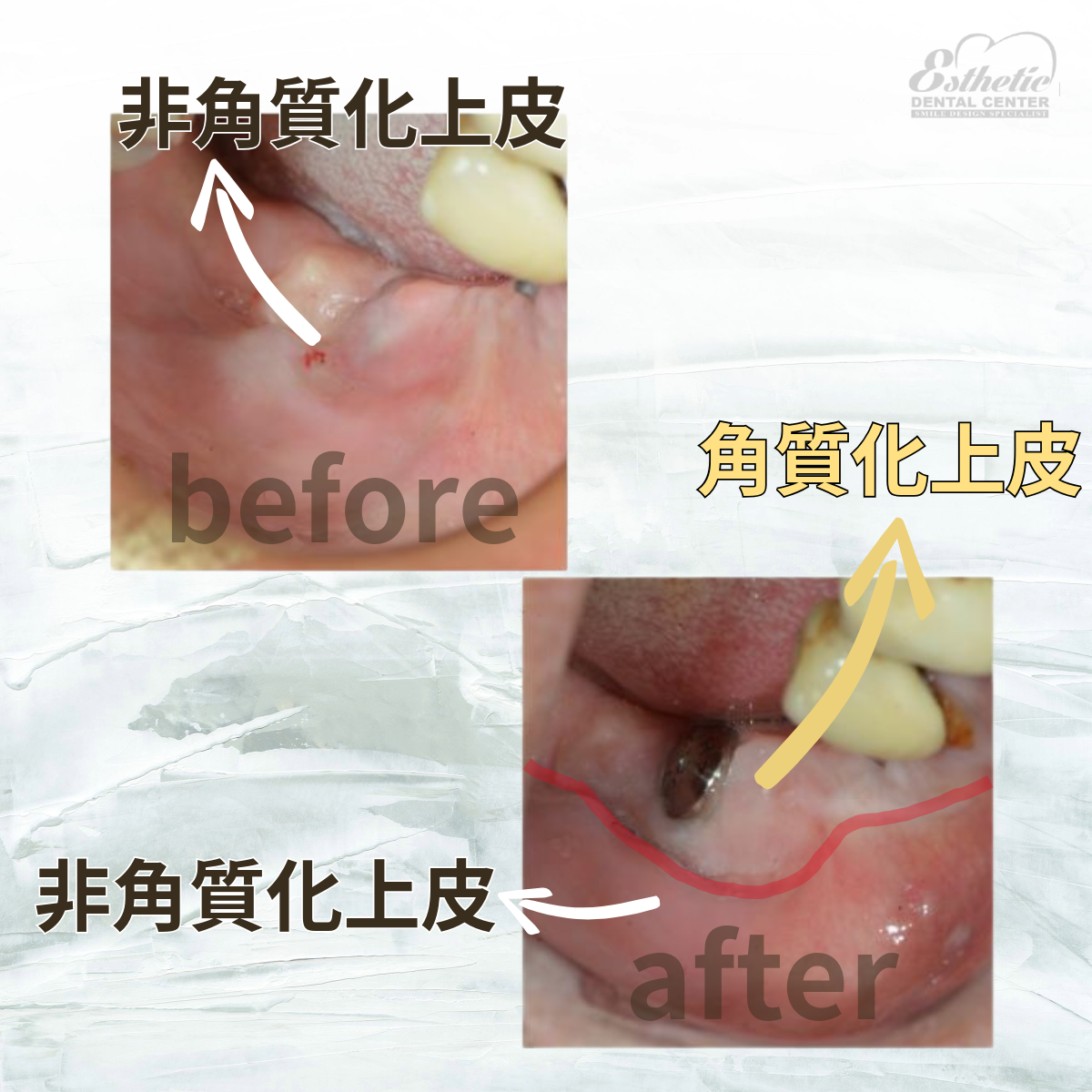 補皮前後對比-角質化牙齦能讓植牙更穩更久