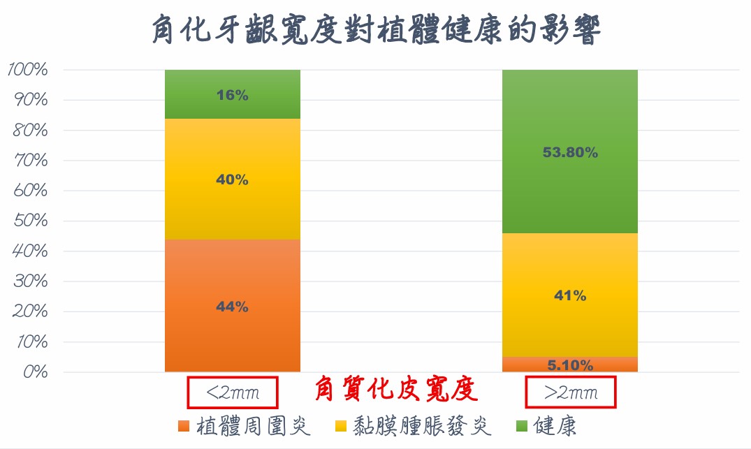 根據臨床研究,角質化牙齦寬度少於2mm時,植牙失敗的風險顯著增加: