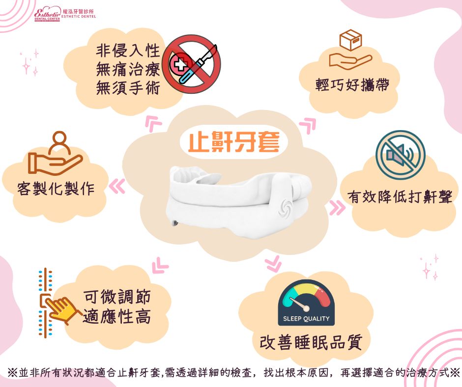 優點:非侵入性、無需手術、可自行拆卸清潔、攜帶方便,特別適合 輕中度 OSA 或單純打呼患者。