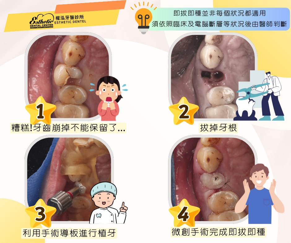 現在有了「即拔即種」技術,能在拔牙同時立即植入人工牙根,一次完成手術!